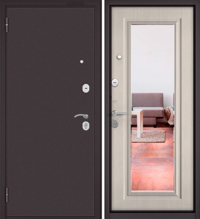 Входная дверь Входная дверь в квартиру Мастино (Бульдорс) Econom 60/140 (Букле шоколад - Ларче бьянко, зеркало) — купить в Новосибирске в компании RosDoor (Сталь-сервис)