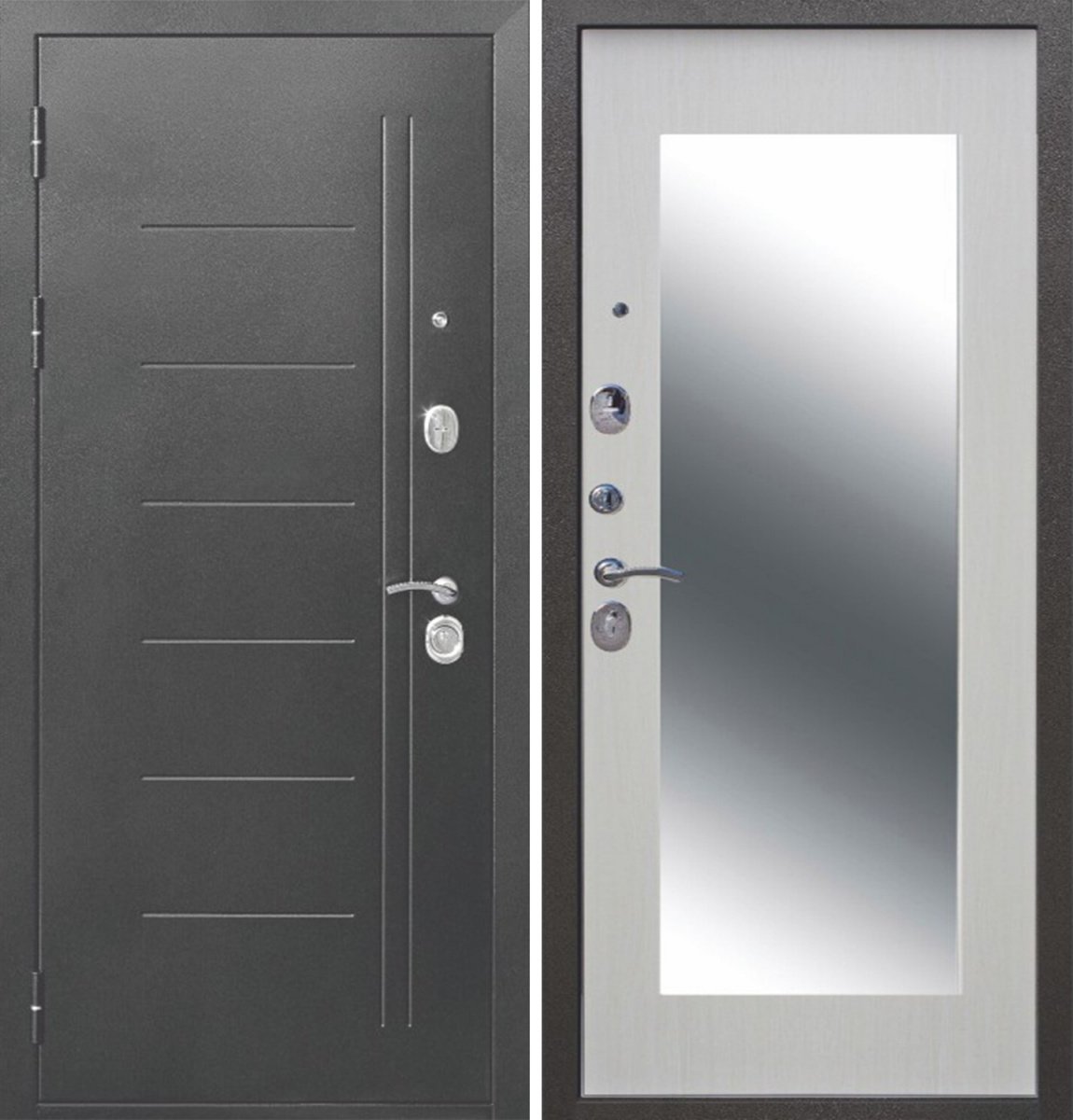 Входная дверь 10 см Троя серебро MAXI зеркало МДФ Белый ясень — купить в Новосибирске по цене 36 300 руб. — RosDoor (Сталь-сервис)