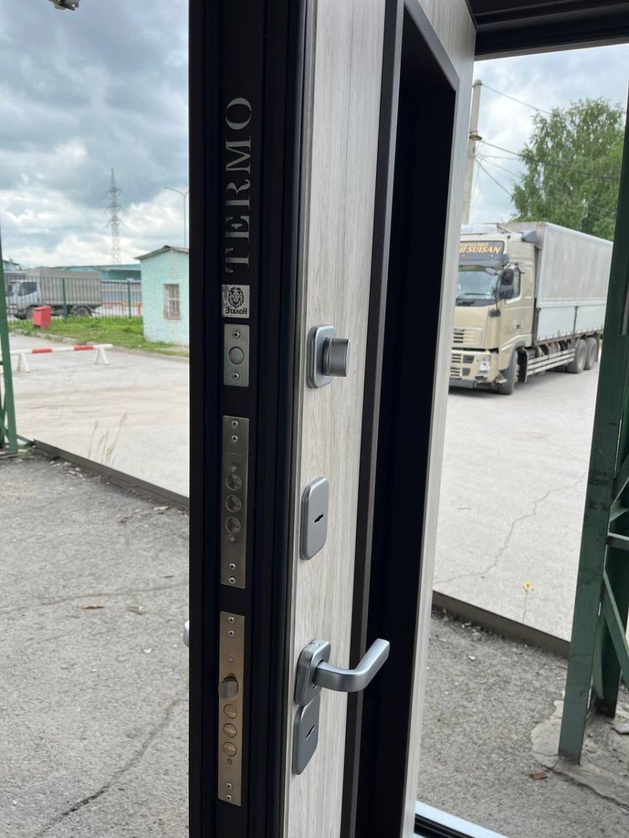Артикул: Дверь стальная Эталон Термо-СП10 Шоколад муар блеск-Дуб полярный 860 правая (терморазрыв)