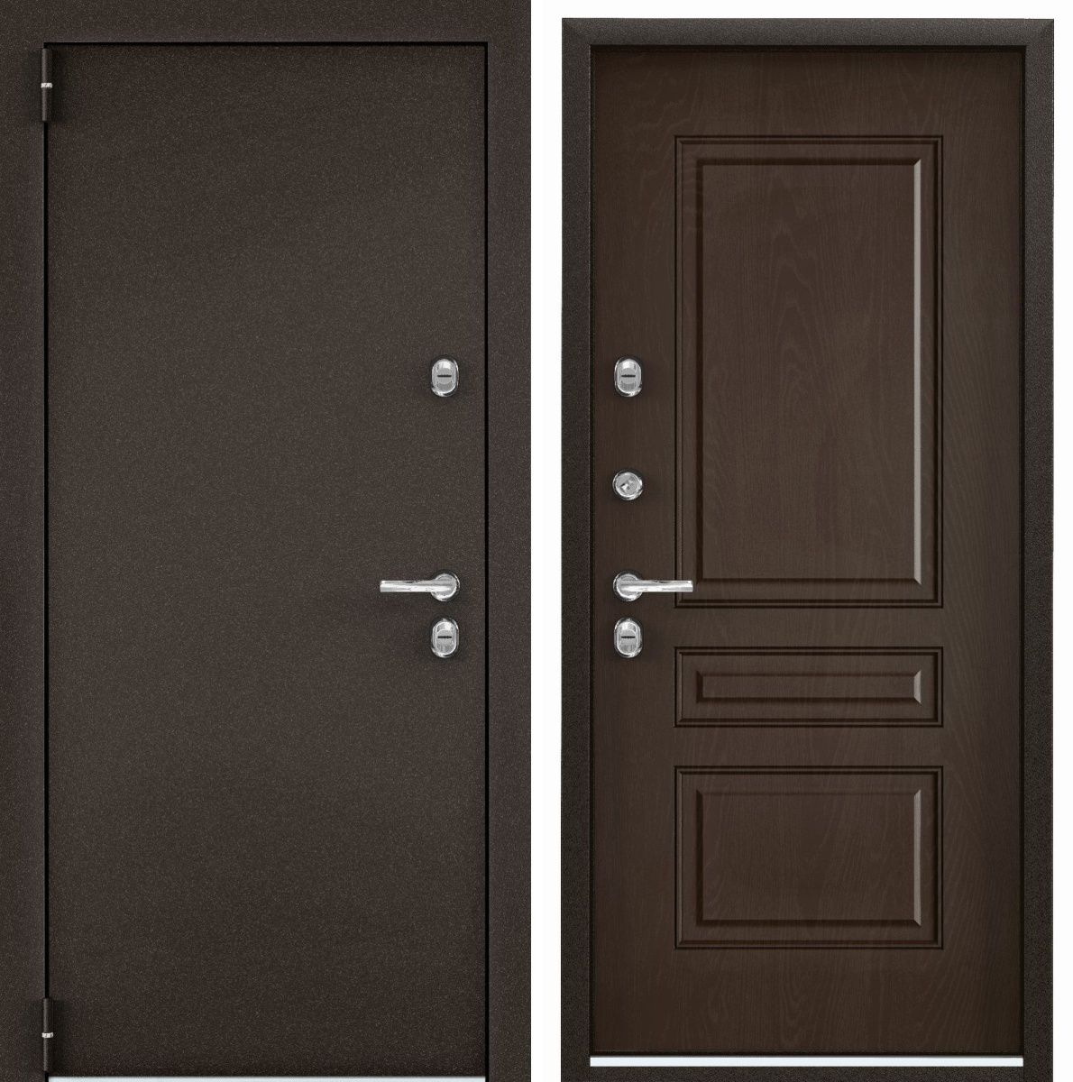 Короб двери с терморазрывом, 3 контура уплотнения, 3 контура примыкания полотна к коробу, 3 слоя антикоррозийного покрытия всех металлических элементов, полотно толщиной 108 мм. Уверенно противостоит холоду и коррозии!