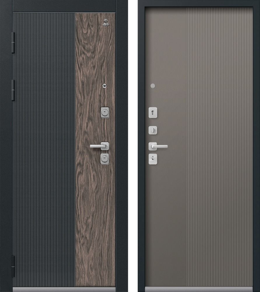 Входная дверь Центурион С-111-2025 Чёрный муар+Кварц черный+Орех Мокко - Кашемир базальт — купить в Новосибирске в компании RosDoor (Сталь-сервис)