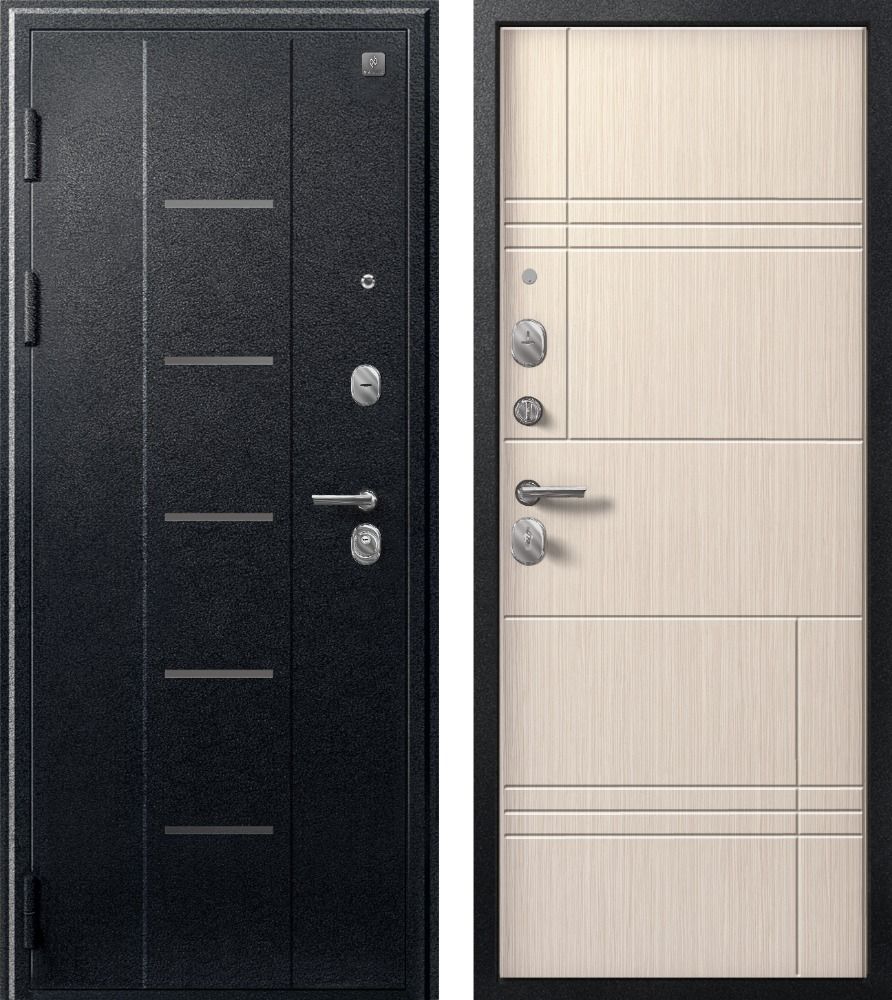 Входная дверь Центурион V-06-2024 Чёрный муар-Лиственница светлая — купить в Новосибирске в компании RosDoor (Сталь-сервис)